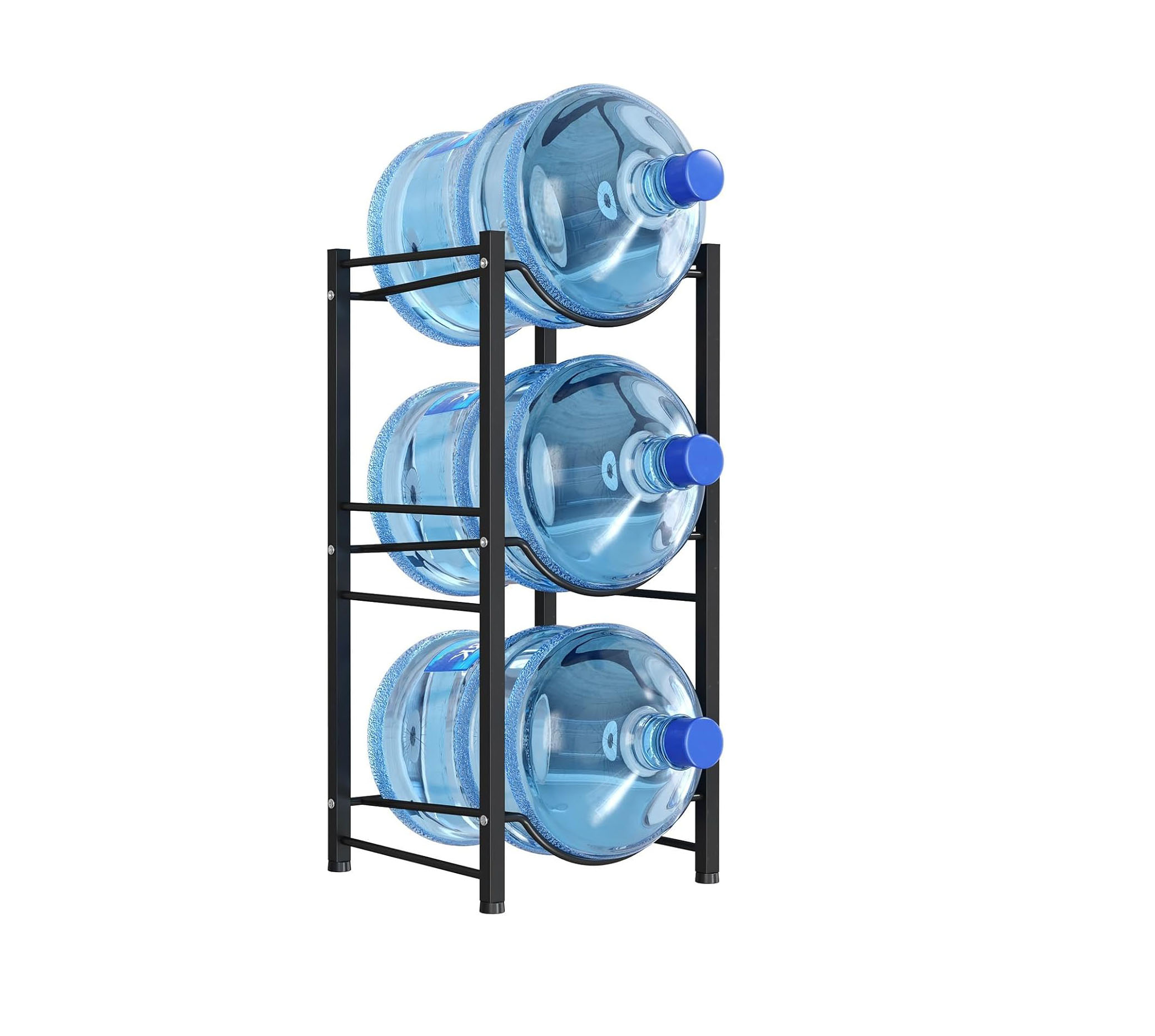 GALLON WATER JUG HOLDER – 3 TIER METAL WATER BOTTLE STAND WITH 3 SLOTS – BLACK