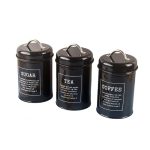 SET OF 3 METAL KITCHEN CANISTERS WITH LID FOR SUGAR, TEA & COFFEE