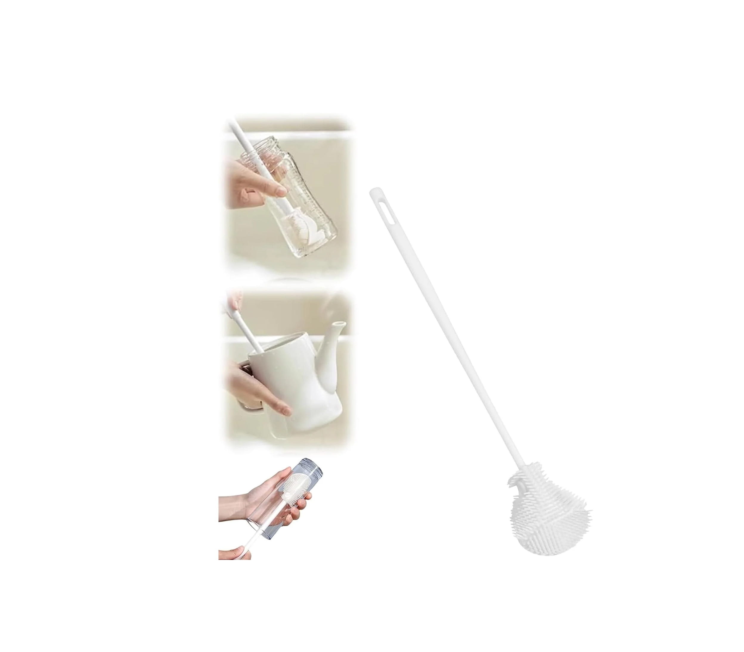 SILICONE BOTTLE CLEANING BRUSH 360° ROTATIONAL FLEXIBLE SOFT BRISTLE WITH LONG HANDLE