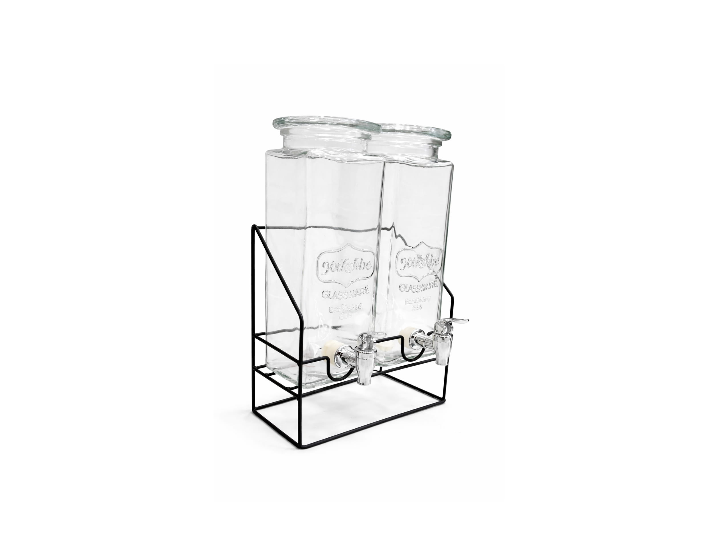 DOUBLE JUG WATER DISPENSER WITH TAPS – 2 GLASS BEVERAGE DISPENSER 2.2L x 2 WITH IRON FRAME STAND