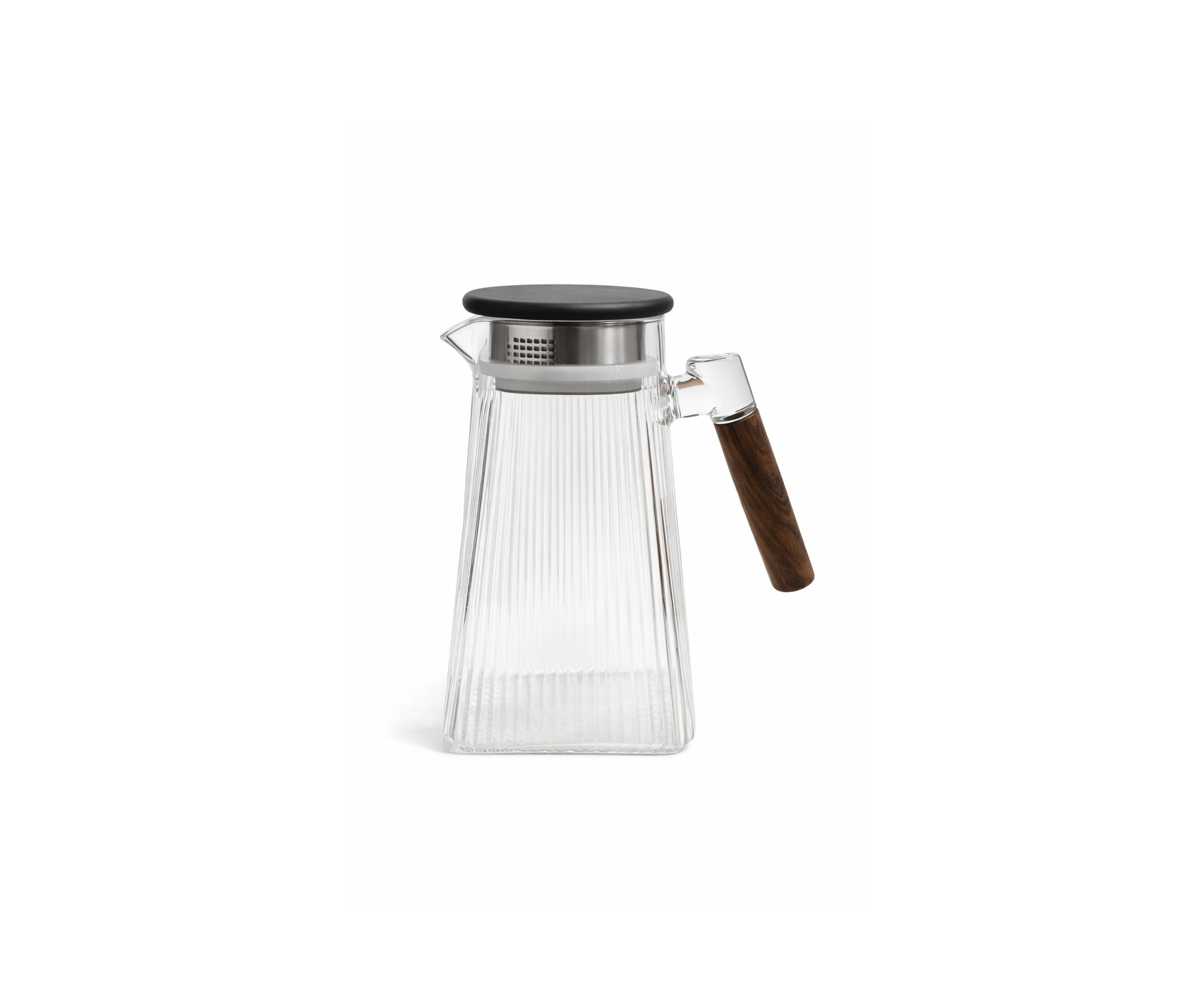 GLASS PITCHER LINE PATTERN GLASS BIULD IN FILTER WITH WOOD LID & HANDLE – BOROSILICATE GLASS