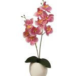 ARTIFICIAL ORCHID FLOWER (DARK PINK) WITH CERAMIC POT – 37 CM