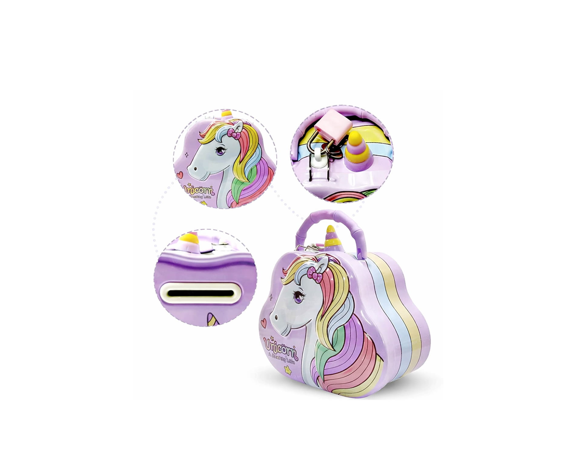 UNICORN BOX FOR KIDS – PIGGY BOX WITH LOCK & KEYS, PORTABLE COIN BANK WITH HANDLE