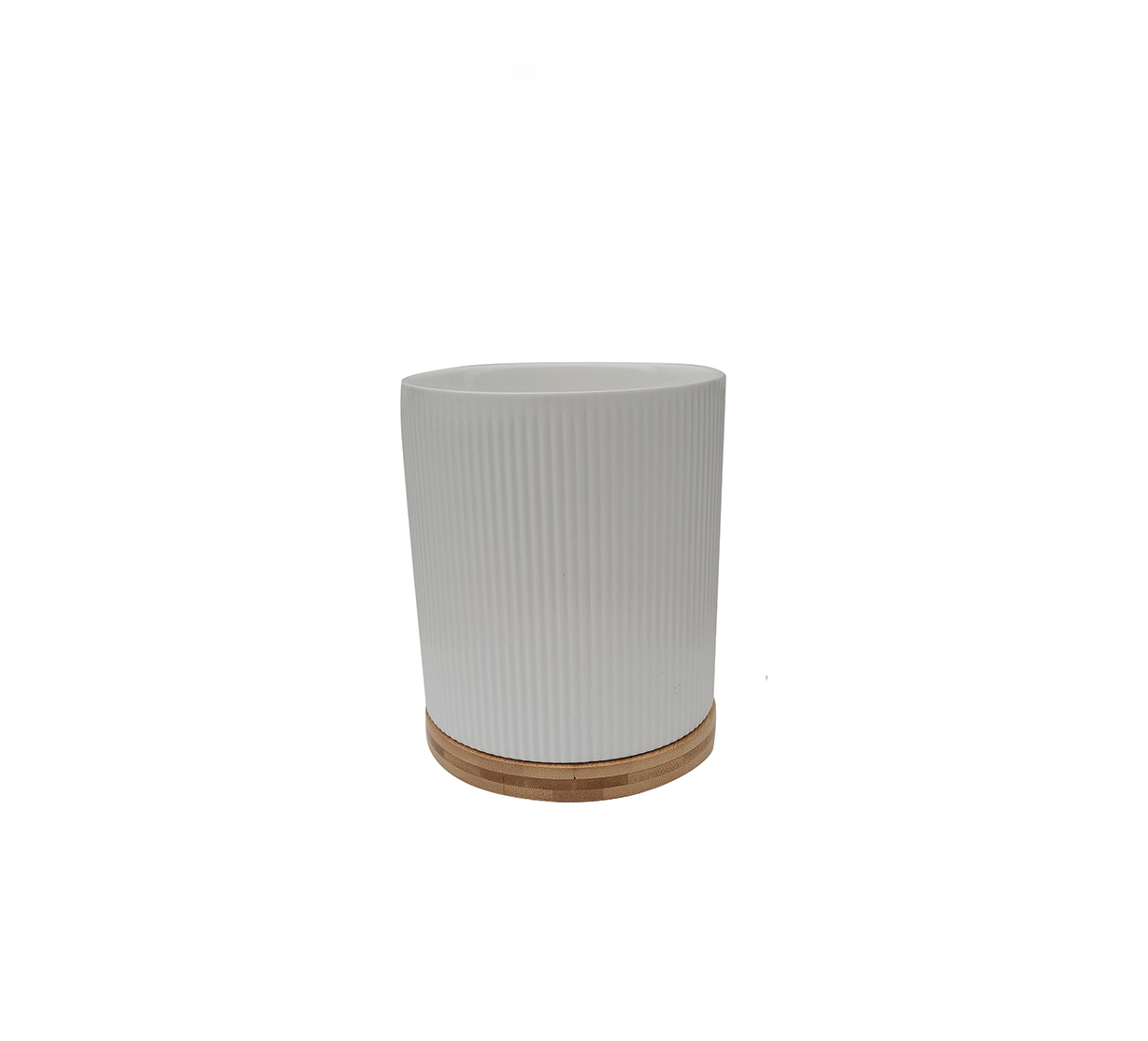 360° ROTATING LARGE CERAMIC KITCHEN UTENSIL HOLDER WITH WOODEN BASE