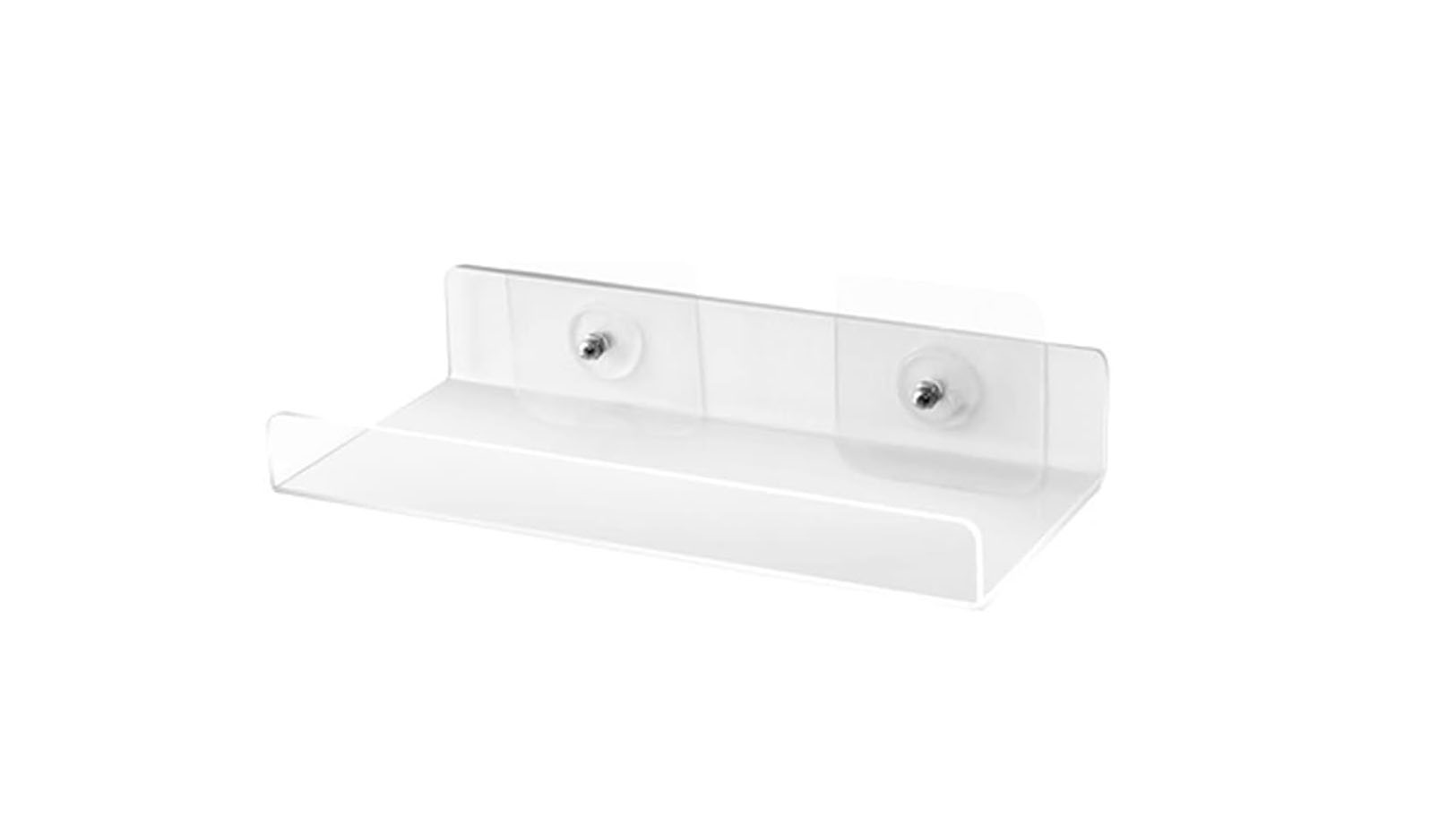 STORAGE RACK ACRYLIC SHELVES – CLEAR FLOATING SHOWER SHELF WITH HOOKS, TRANSPARENT WALL MOUNTED, NO DRILL