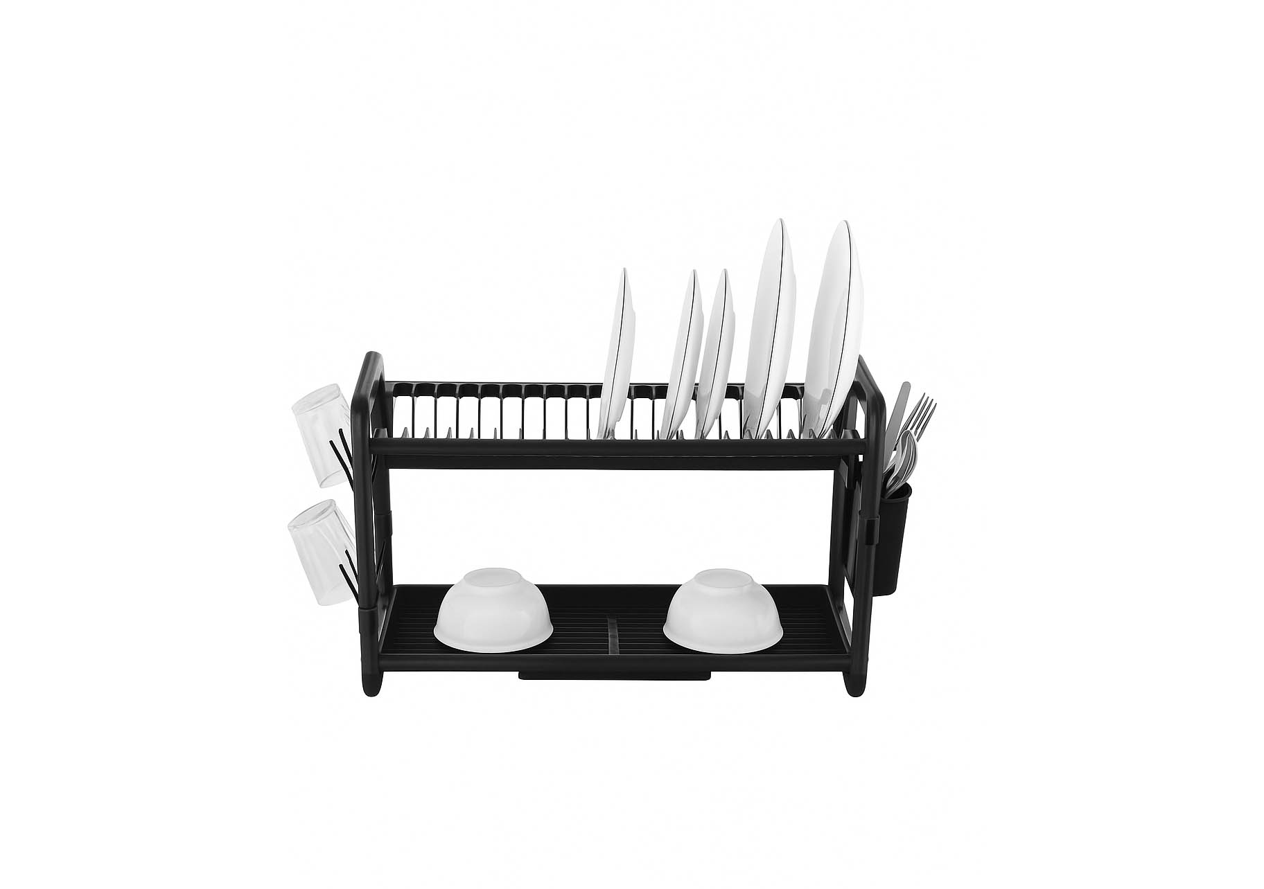 LARGE ALUMINUM DISH DRYING RACK WITH DRAINBOARD – MULTIFUNCTIONAL 2-TIER DISH RACK, SPACE-SAVING DESIGN (BLACK)
