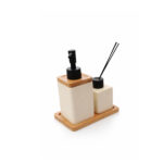 BATHROOM SET SQUARE WITH BAMBOO BASE