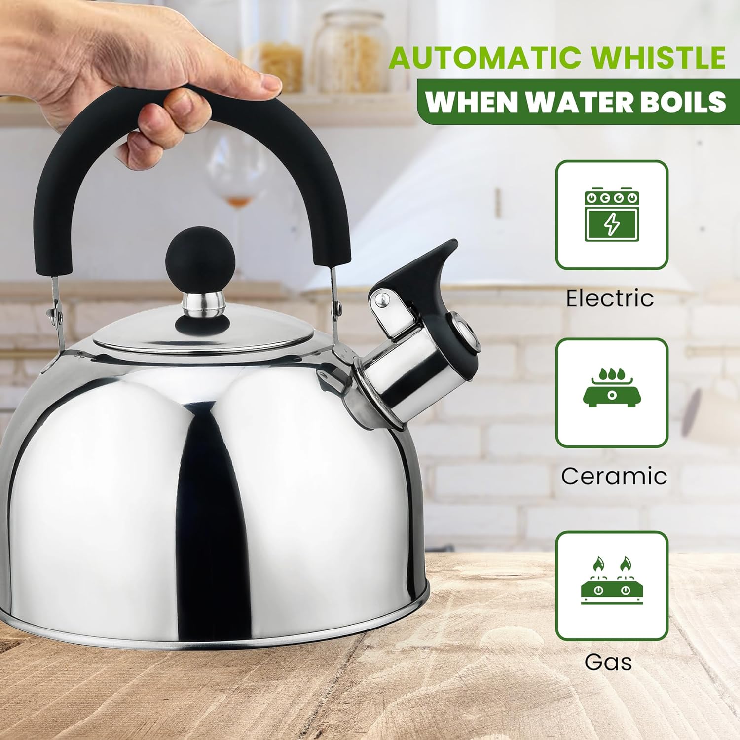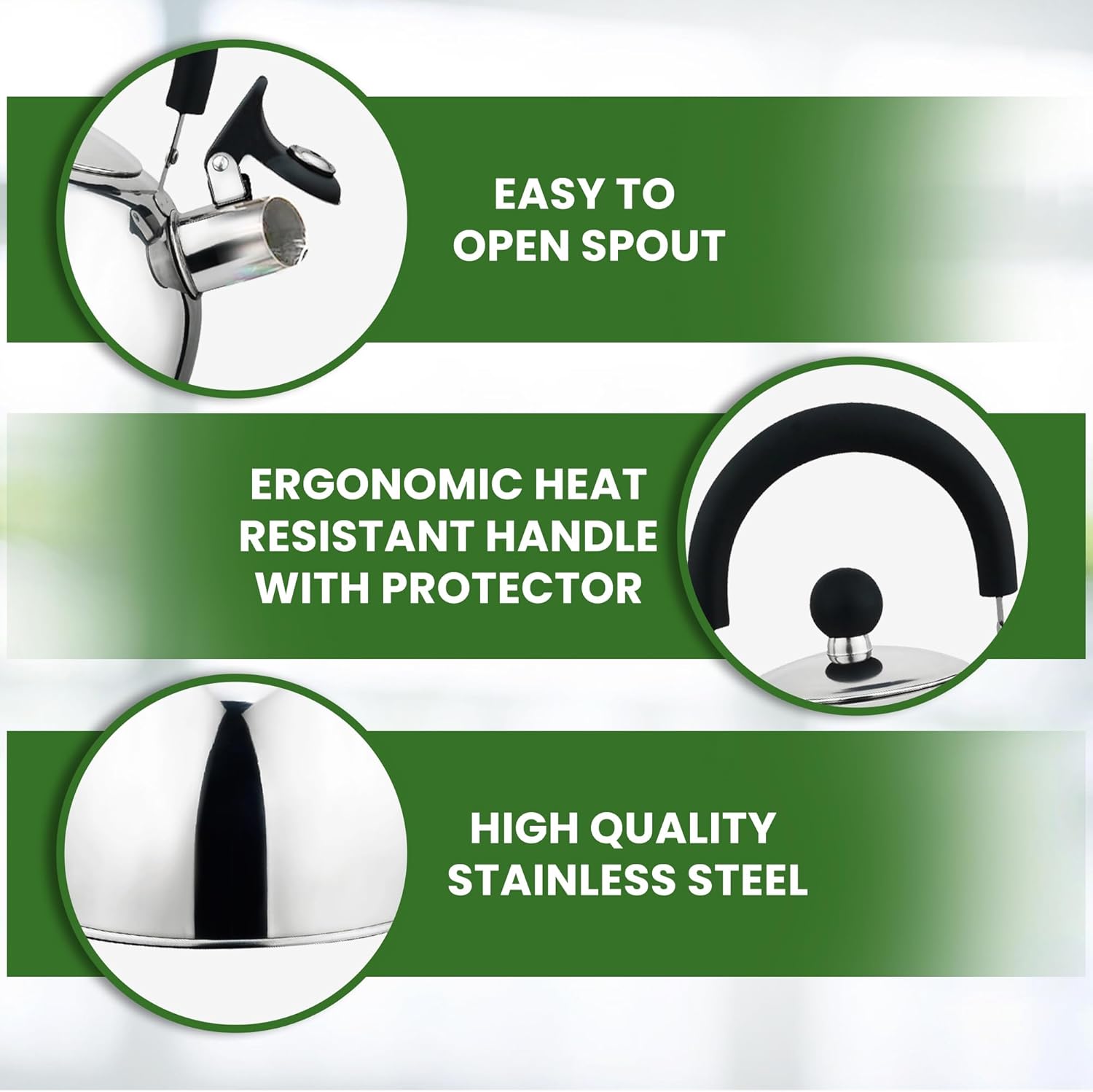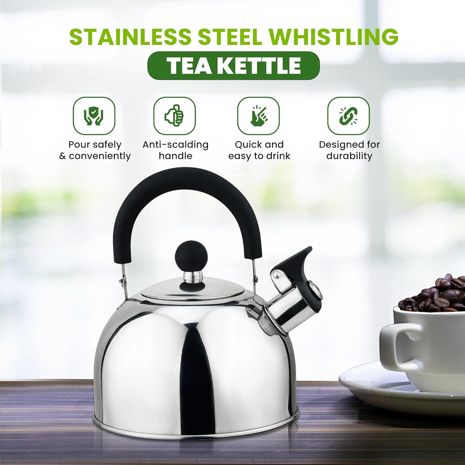 WHISTLING KETTLE TEA POT FOR STOVETOP – STAINLESS STEEL 2 LITER