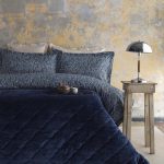 DOUBLE LEROS BLUE VELVET COMPLETE BEDDING SET – QUILTED DUVET COVER WITH SHEET & PILLOWCASES