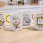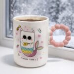 LARGE CERAMIC COFFEE MUG WITH PEARL HANDLE – CARTOON KITTY DESIGN TEA & COFFEE CUP