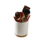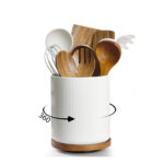 360° ROTATING LARGE CERAMIC KITCHEN UTENSIL HOLDER WITH WOODEN BASE