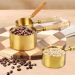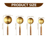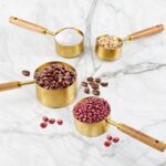 4 PIECE GOLD MEASURING CUPS SET MEASURING CUPS & SPOONS WITH WOODEN HANDLE