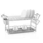 LARGE ALUMINUM DISH DRYING RACK WITH DRAINBOARD – MULTIFUNCTIONAL 2-TIER DISH RACK, SPACE-SAVING DESIGN (SILVER)