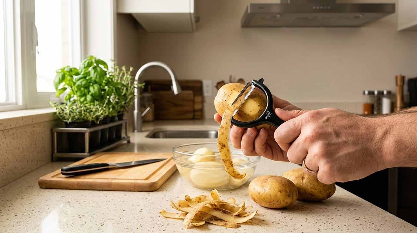 Peel smarter and faster with precision. The Barella Potato Peeler CF1605B is designed to make everyday food preparation effortless and efficient. Featuring a sharp stainless steel swivel blade, it smoothly glides over potatoes, carrots, and more, minimizing waste while maximizing speed. Its ergonomic Y-shape design ensures a comfortable grip without wrist strain, making it perfect for extended use. Built with durability and ease in mind, this peeler is a must-have kitchen essential for every home. Upgrade your kitchen tools and shop now from Homedash in lebanon.