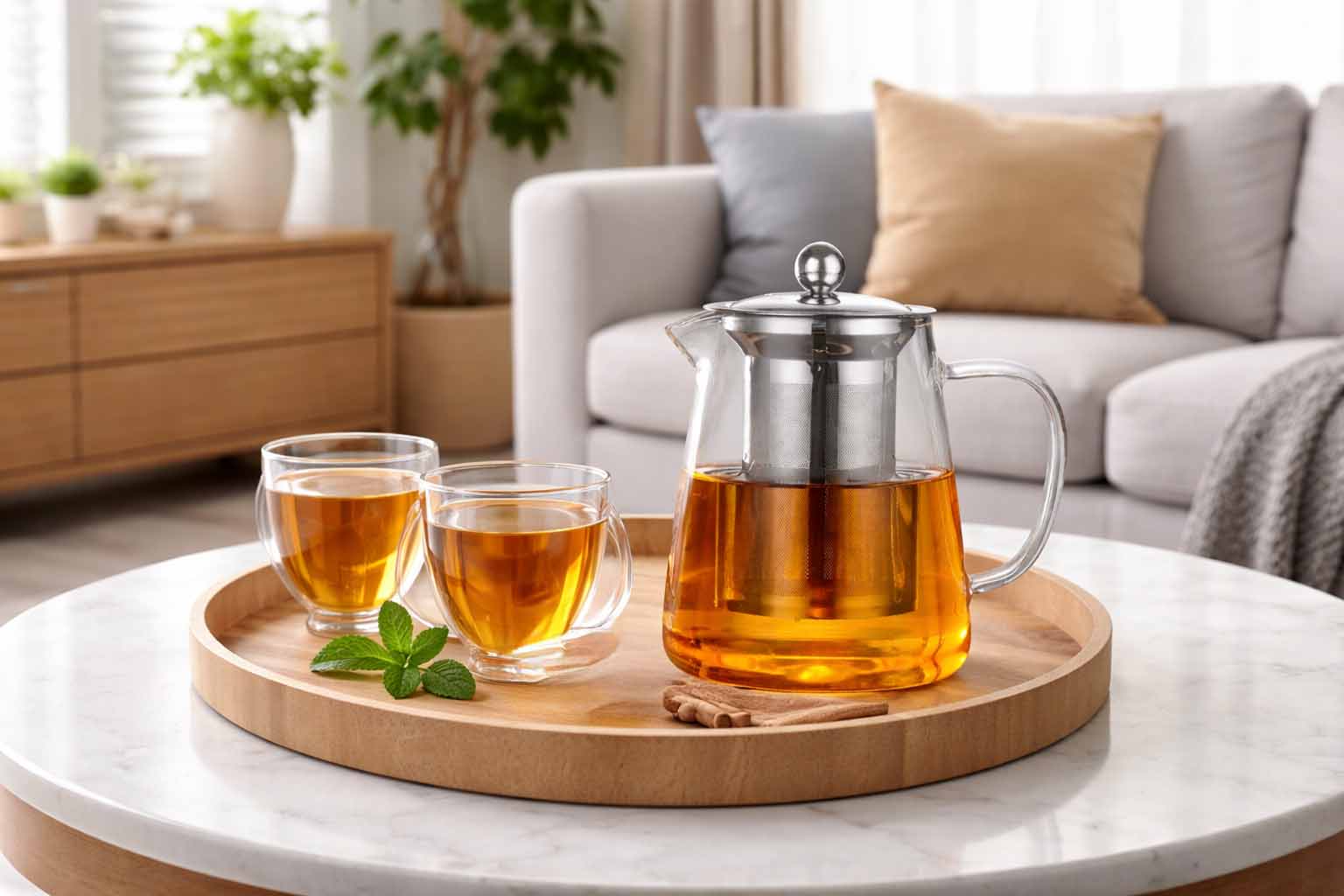 Brew elegance in every cup. Enjoy the perfect tea experience with this premium borosilicate glass teapot designed for both beauty and performance. Its crystal-clear body lets you watch your tea infuse, enhancing every moment of preparation. Built from heat-resistant glass, it withstands sudden temperature changes while maintaining durability and clarity. The stainless steel infuser allows effortless brewing of loose leaf tea, herbal blends, or fruit infusions without residue. Designed with a comfortable heat-insulated handle and secure lid, it ensures safe pouring every time. Ideal for daily use or serving guests in style—shop now from Homedash in lebanon and elevate your tea rituals.