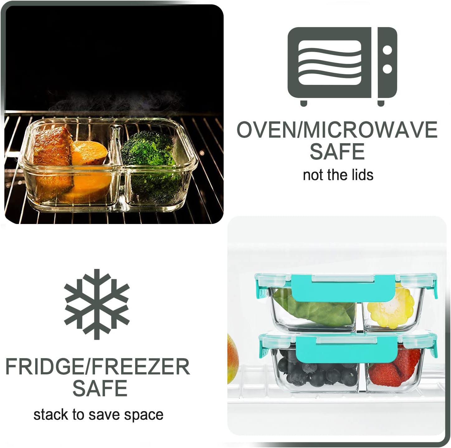 •Microwave, oven, freezer and dishwasher safe