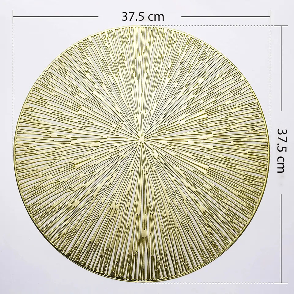 GOLD PLACEMATS ROUND SET OF 6 , METALLIC HOLLOW ROUND PLACEMAT, WASHABLE WIPEABLE EASY CLEAN NON SLIP STAIN KITCHEN DINING TABLE PLACE MATS FOR WEDDING PARTY DECORATION