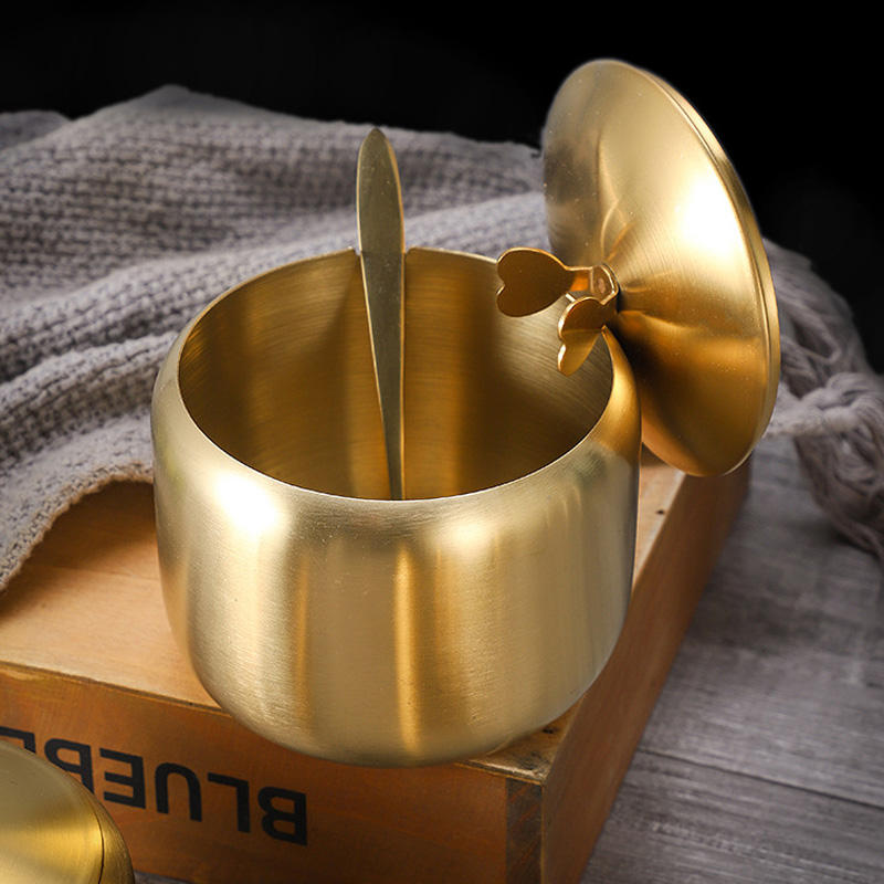 SUGAR BOWL WITH LID AND SPOON – STAINLESS STEEL CONDIMENT CONTAINER FOR KITCHEN & COFFEE TABLE (GOLD / SILVER)