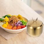 SUGAR BOWL WITH LID AND SPOON – STAINLESS STEEL CONDIMENT CONTAINER FOR KITCHEN & COFFEE TABLE (GOLD / SILVER)