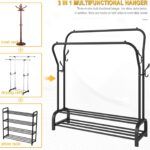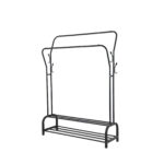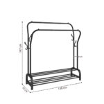 DOUBLE ROD CLOTHING RACK WITH SHOE SHELVES & SIDE HOOKS – BLACK METAL GARMENT RACK