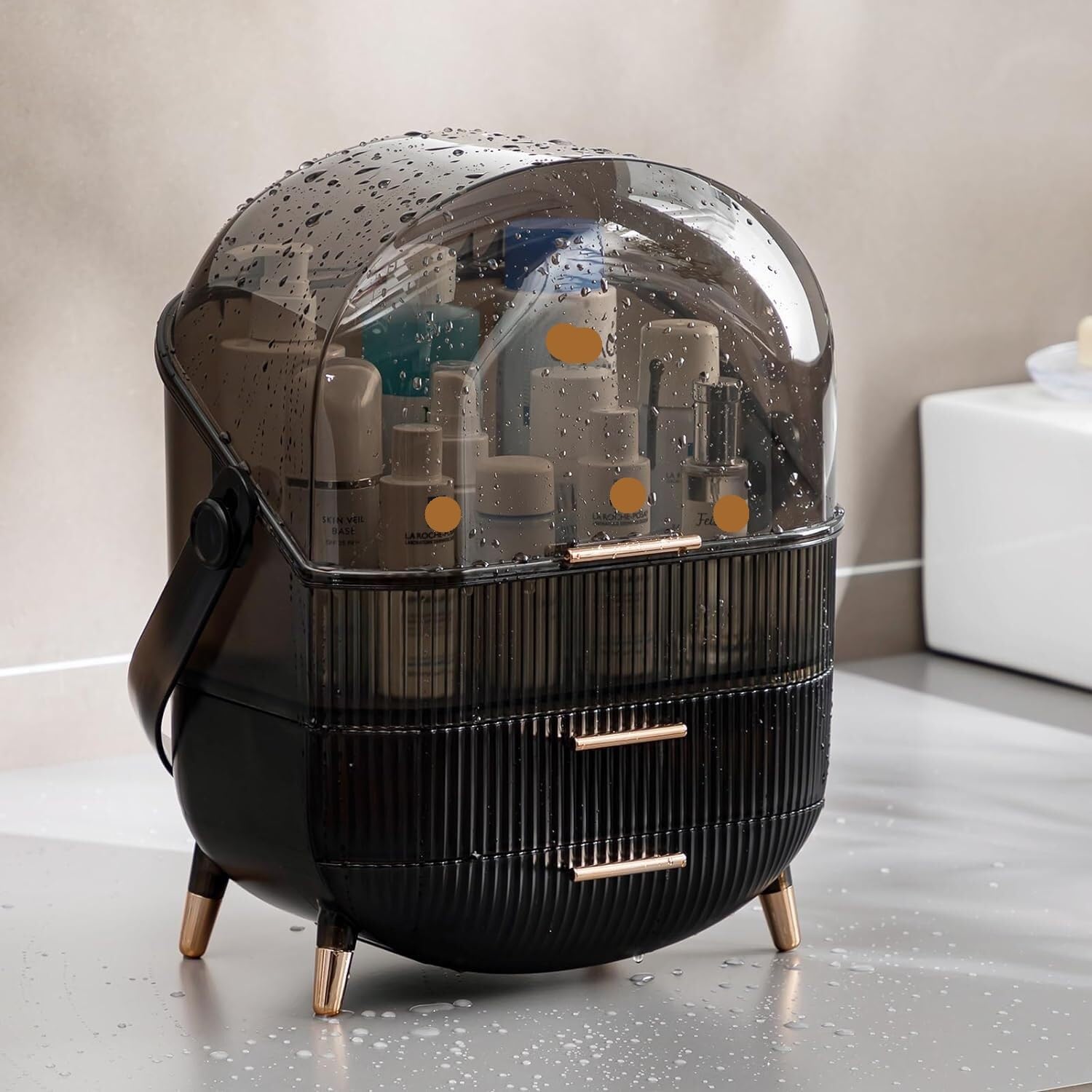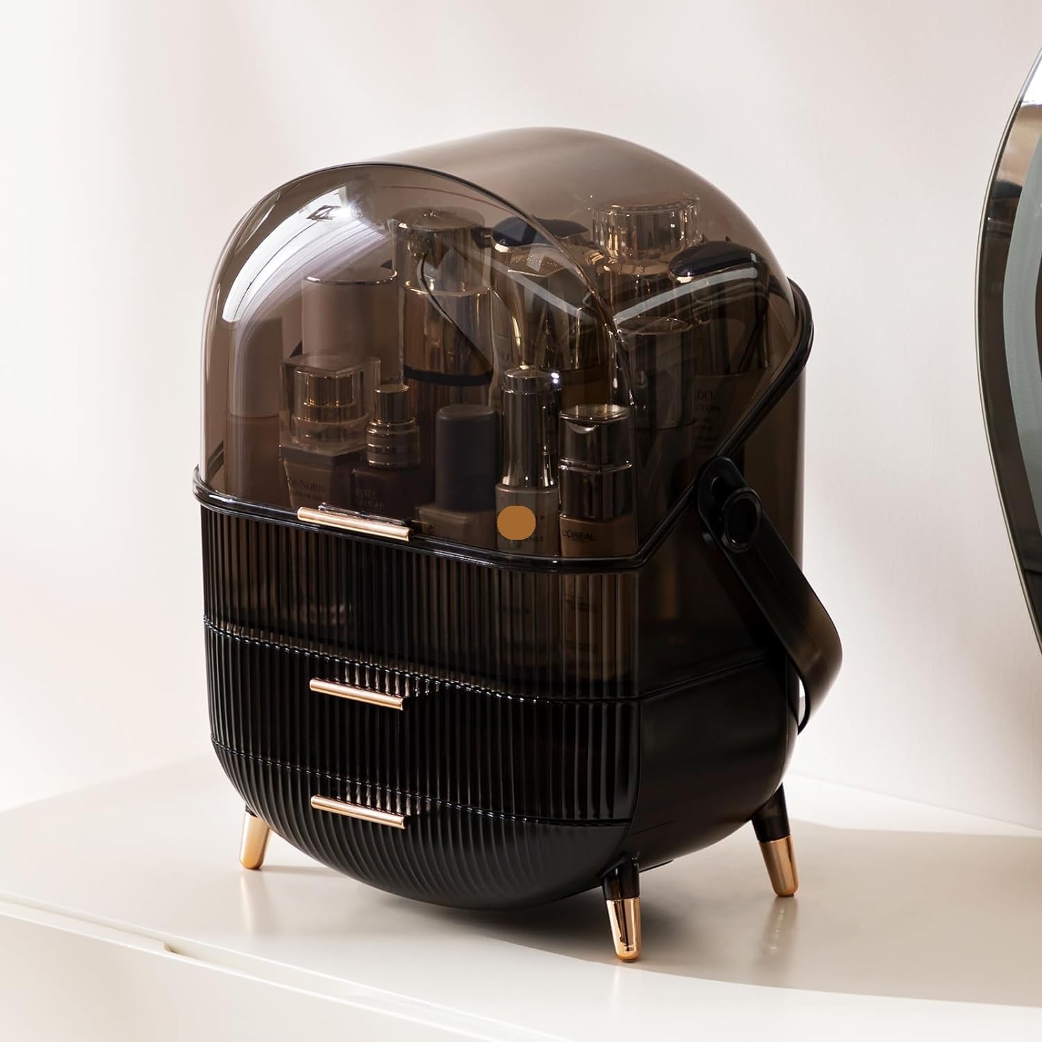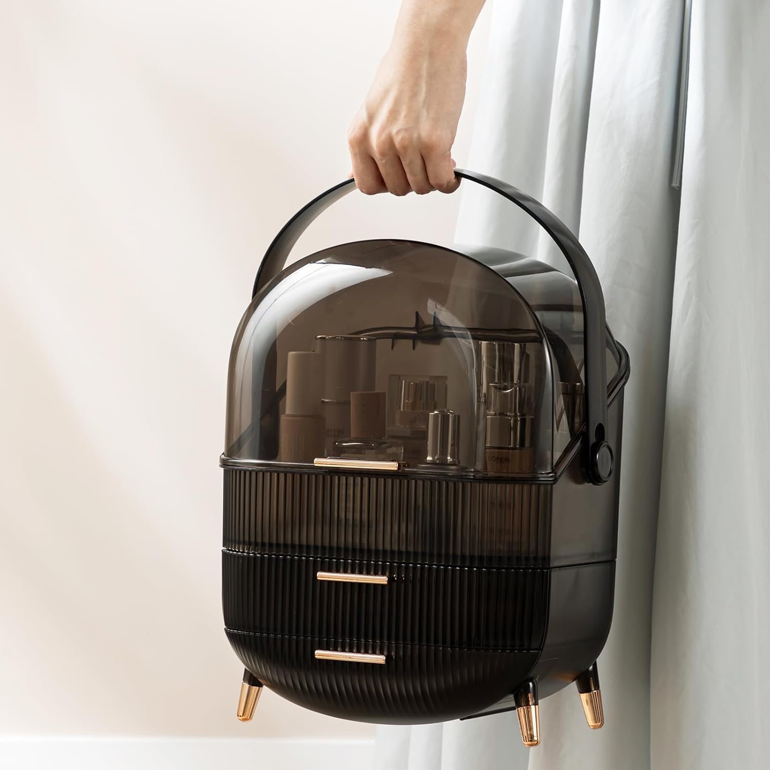 BLACK MAKEUP ORGANIZER SKINCARE ORGANIZER WITH TRANSPARENT COVER