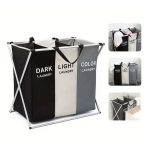 3 section laundry basket with stand black white grey foldable laundry sorter with compartments