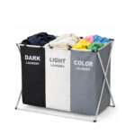 •3 separate compartments for dark, light, and color laundry sorting