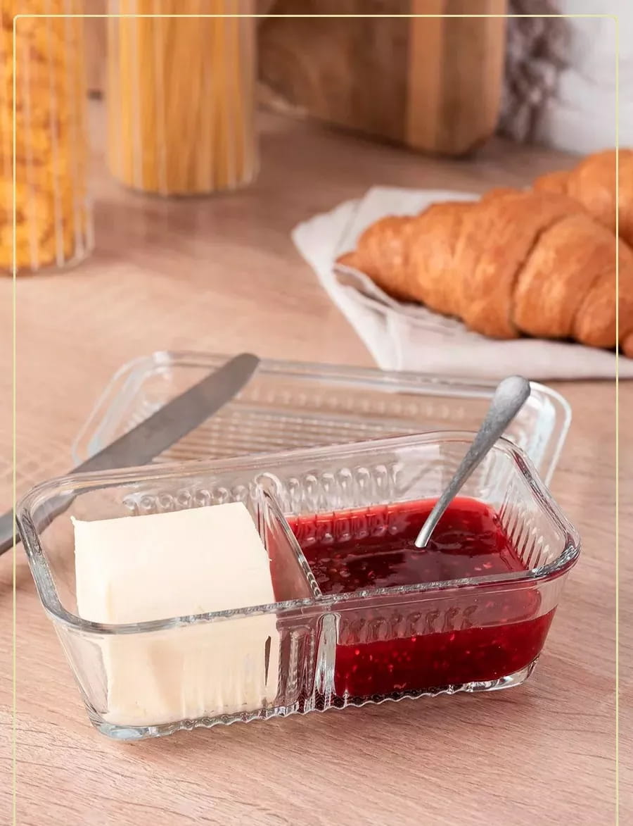 Upgrade your breakfast storage with smart elegance! The PASABAHCE Frigo Studio Double Compartment Glass Container is designed to keep your favorite foods fresh and perfectly separated. With a built-in divider, it allows you to store butter, honey, or spreads without mixing flavors. Made from high-quality tempered glass, it ensures durability and clarity while adding a premium touch to your kitchen. Its compact 480ml capacity and secure glass lid make it ideal for everyday use. (shop now from Homedash in Lebanon)