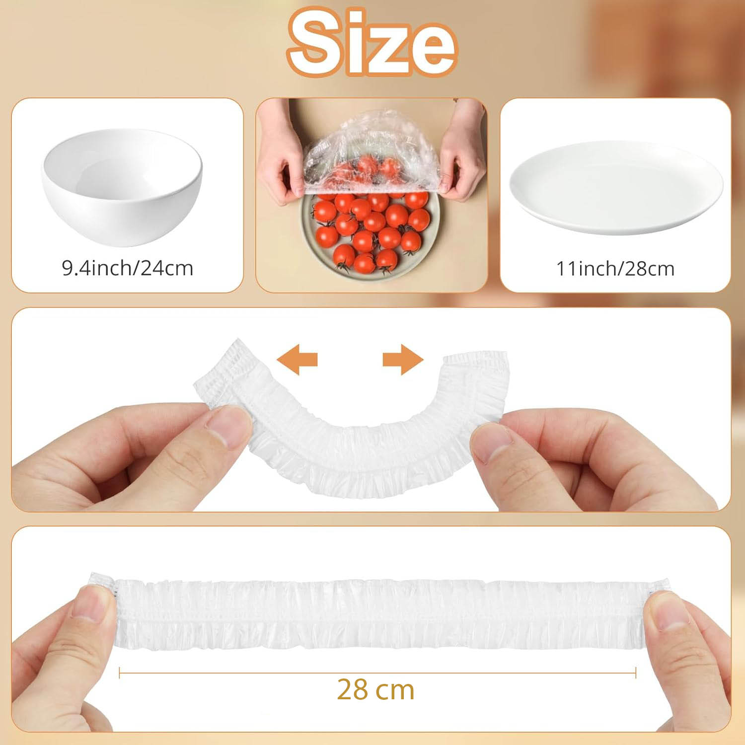 •Easy to Use: Simply stretch over any bowl or plate