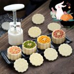 HAND PRESSED MOON CAKES MOLD FOR MAAMOUL – 6 ROUND PATTERNS TRADITIONAL PASTRY PRESS BAKING MOLD