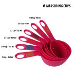 •6 measuring cups: 1 cup – 250 ml, 3/4 cup – 188 ml, 2/3 cup – 167 ml, 1/2 cup – 125 ml