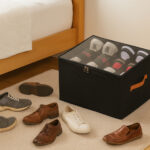 Upgrade your closet storage with this Foldable Shoe Organizer, designed to keep your footwear neat, visible, and dust-free. This fabric shoe storage box fits 12 pairs and features a transparent PVC cover for quick identification. The stackable design maximizes vertical space, while the foldable structure makes it easy to store when not in use. With durable brown handles, reinforced stitching, and a smooth two-way zipper, this closet shoe organizer is perfect for bedrooms, hallways, entryways, or wardrobe cabinets. Each of the 12 individual cavities can hold one pair of shoes or a single shoe, making it ideal for sneakers, sandals, flats, and kids’ shoes.