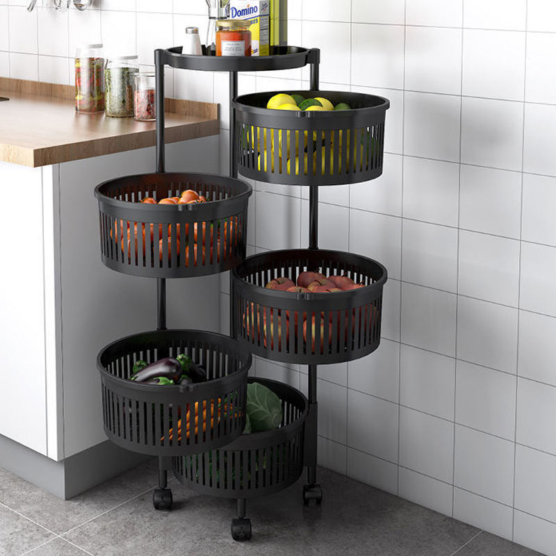 •5-Tier Large Capacity: Spacious baskets for fruits, vegetables, pantry goods, or household items