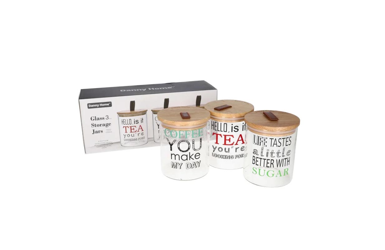 GLASS CANISTER SET 3PCS 750ML WITH AIRTIGHT WOODEN LIDS