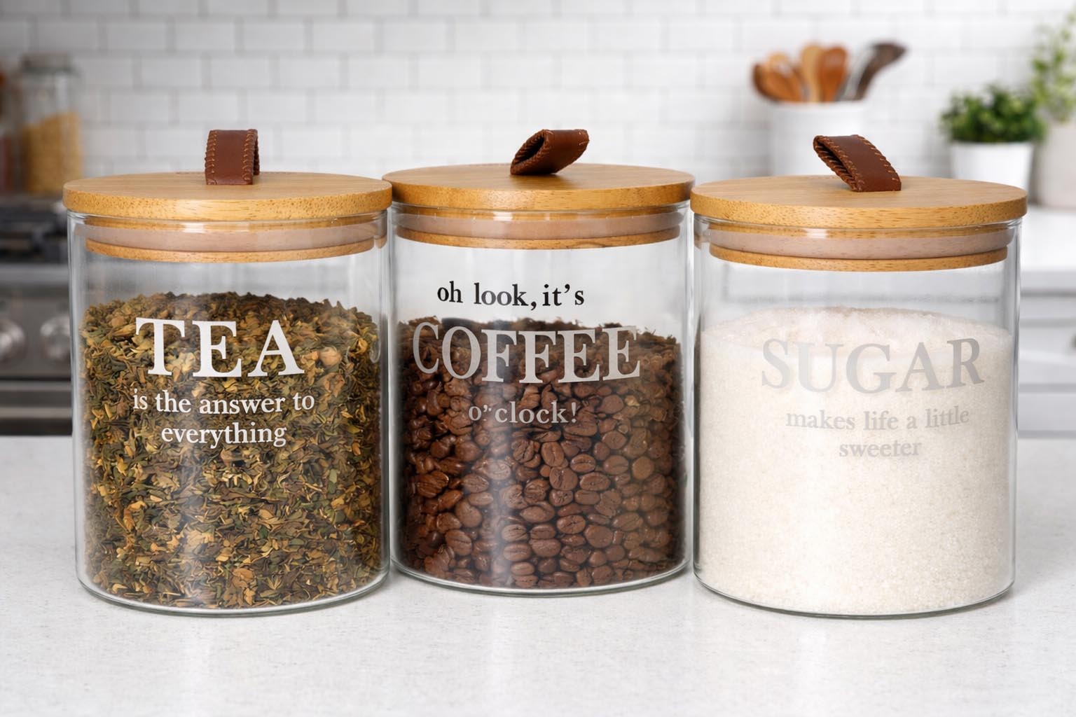 •Ideal for storing tea, coffee, sugar, flour, rice, pasta, spices, or snacks, Smooth wooden lids add a modern, warm aesthetic