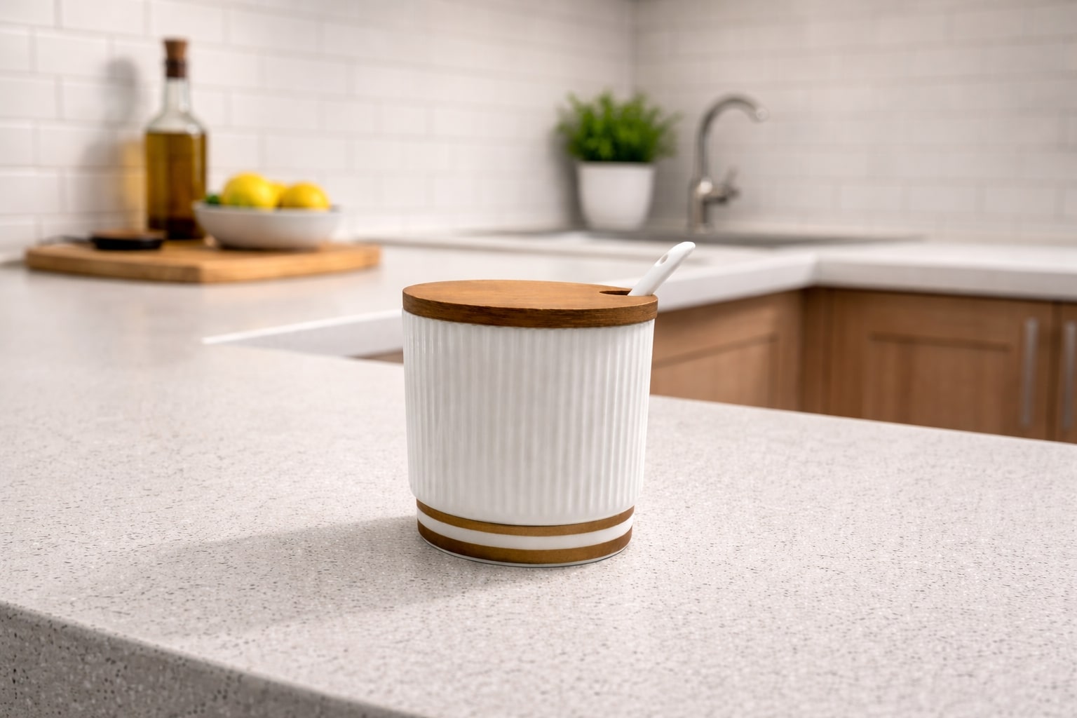 •Included Package: 1 × Ceramic sugar bowl – 1 × Bamboo lid – 1 × Ceramic spoon