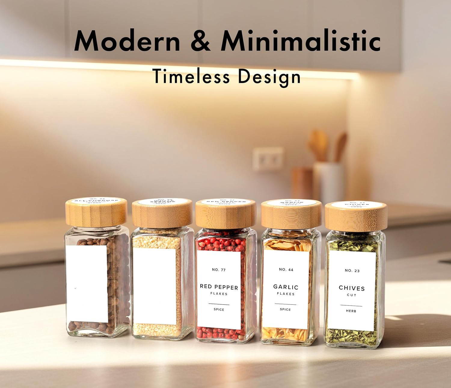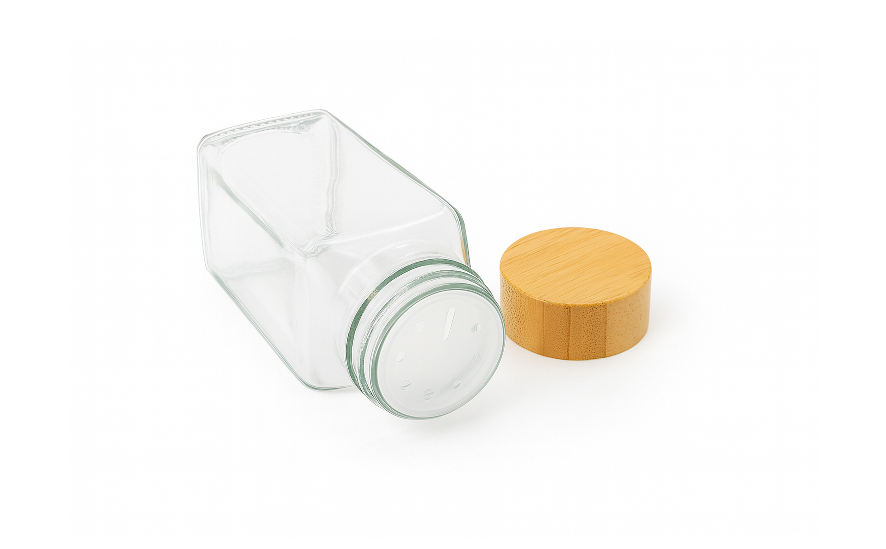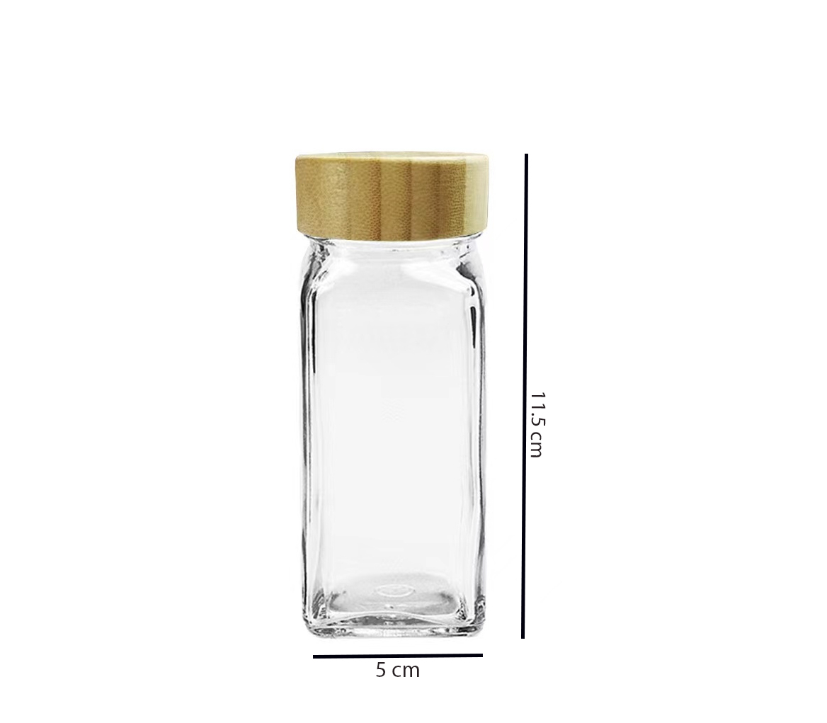 SQUARE SPICE JAR WITH BAMBOO WOODEN LID SPICE JAR – BAMBOO LID GLASS CONTAINER FOR SPICE ORGANISATION