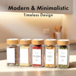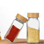 SQUARE SPICE JAR WITH BAMBOO WOODEN LID SPICE JAR – BAMBOO LID GLASS CONTAINER FOR SPICE ORGANISATION