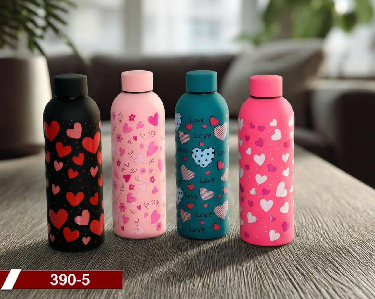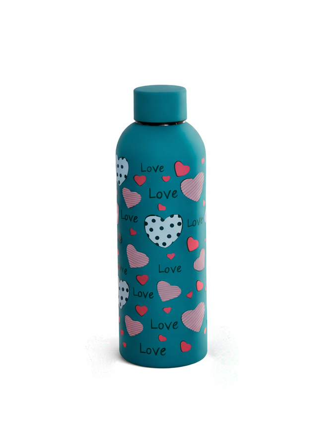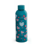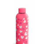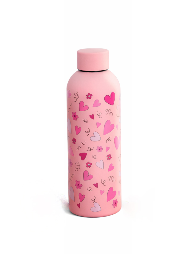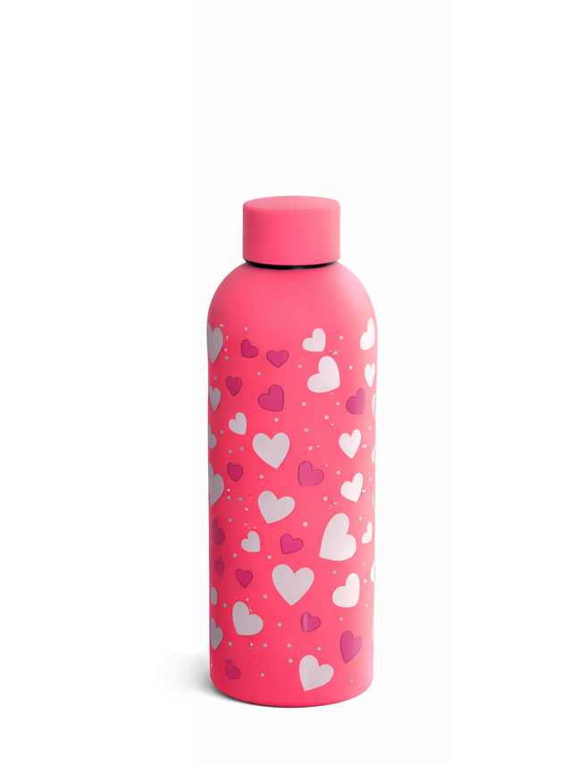 stainless steel insulated water bottle with hearts shapes keeps drinks hot and cold