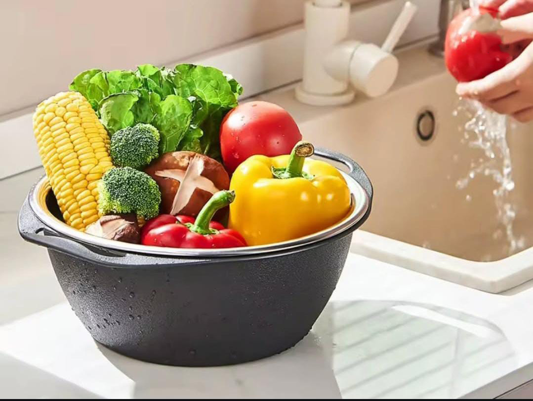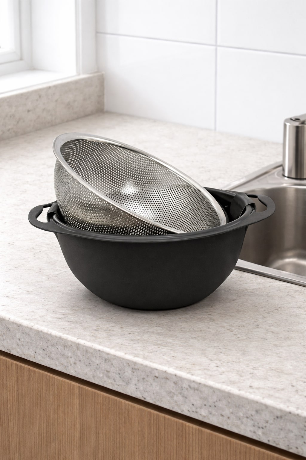 •Premium stainless-steel colander paired with an durable ABS plastic bowl