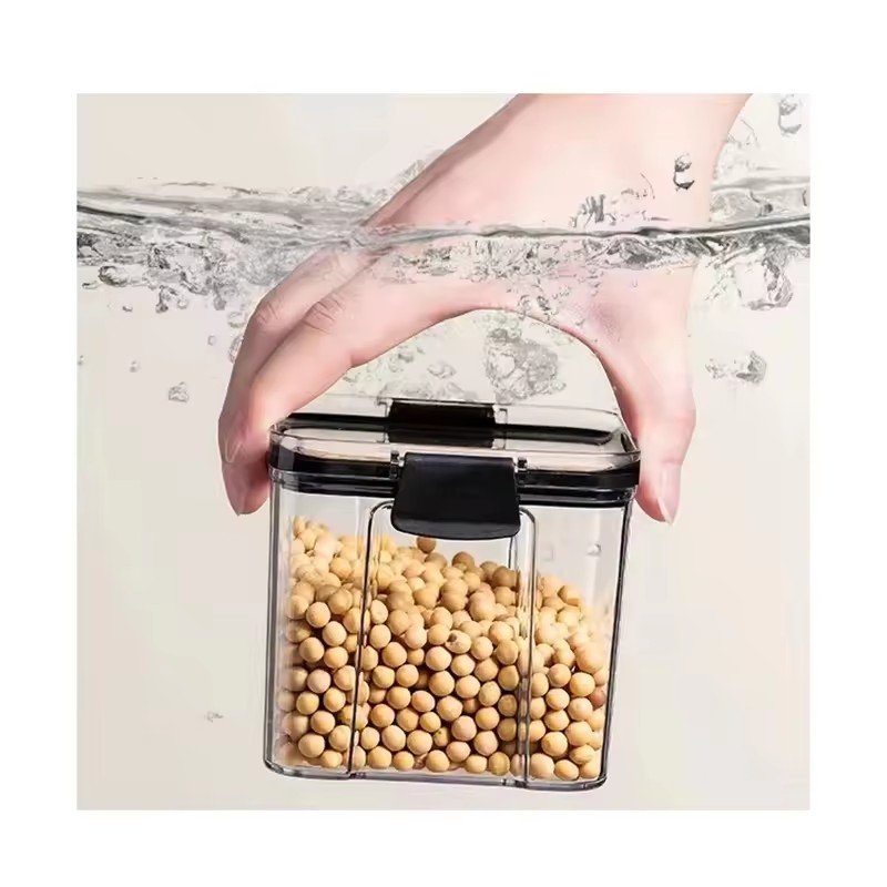 Clear airtight plastic food storage container with locking lid for pantry organization