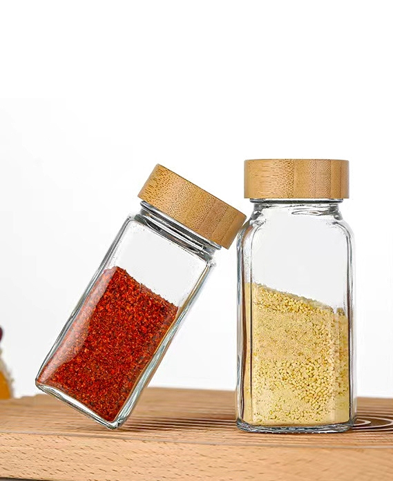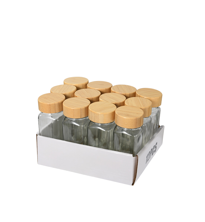 SPICE JARS 12 PCS – GLASS WITH WOODEN LIDS