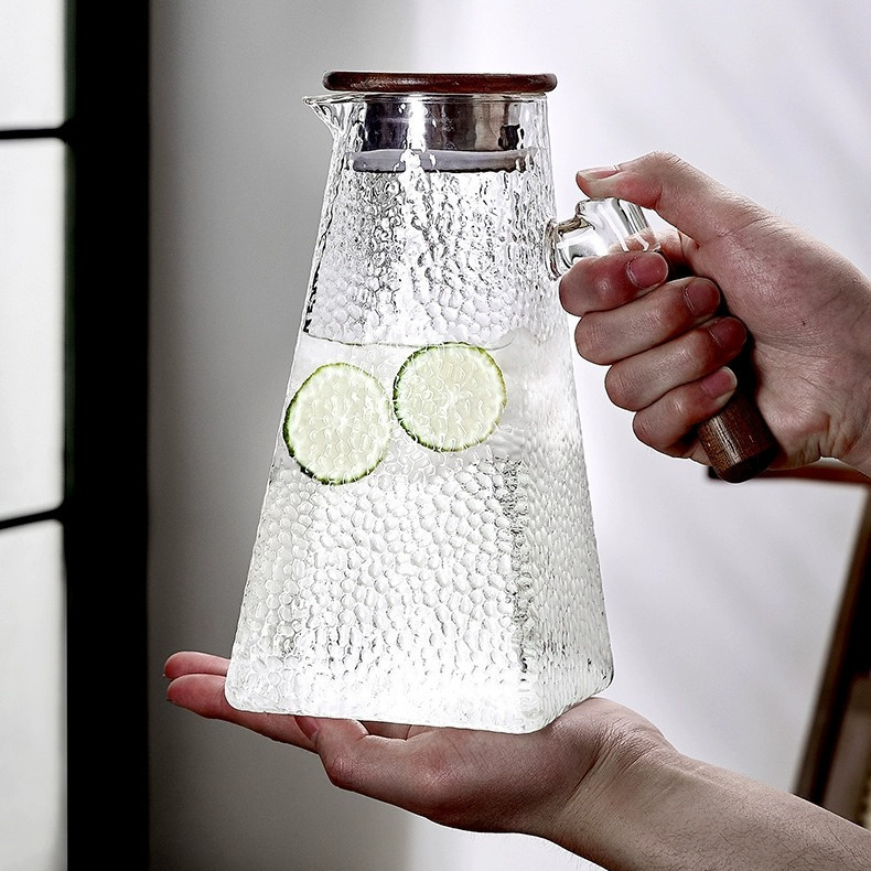 Serve in style with elegance and durability! This beautifully crafted hammered glass water pitcher combines modern design with practical functionality. Made from heat-resistant borosilicate glass, it is perfect for both hot and cold beverages. The natural wooden lid with stainless steel filter and silicone seal ensures secure pouring while keeping drinks fresh. Ideal for everyday use or special gatherings — shop now from Homedash in Lebanon and upgrade your drinkware collection.