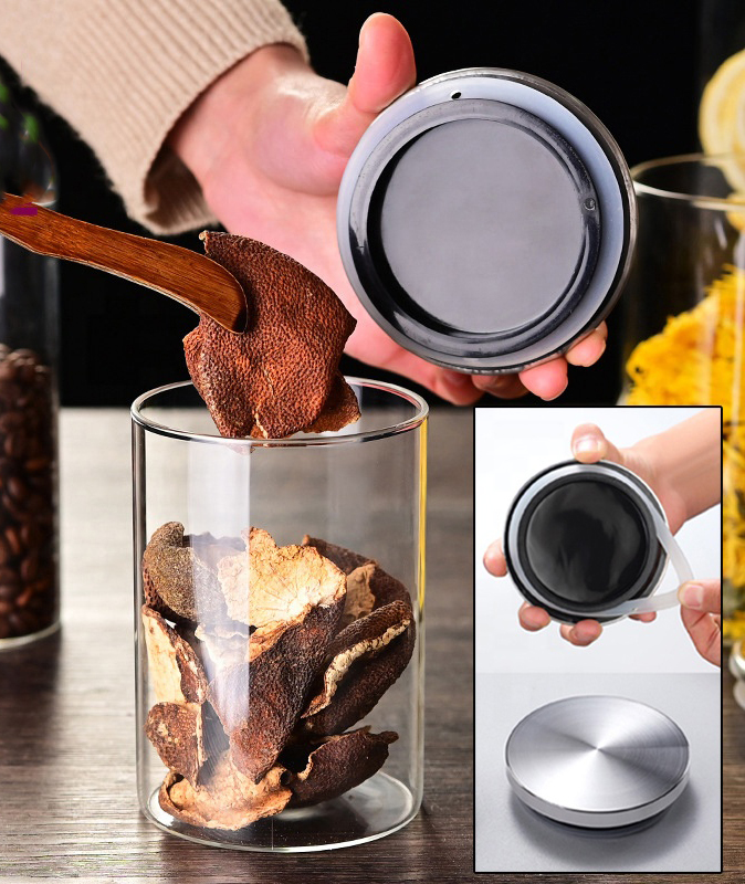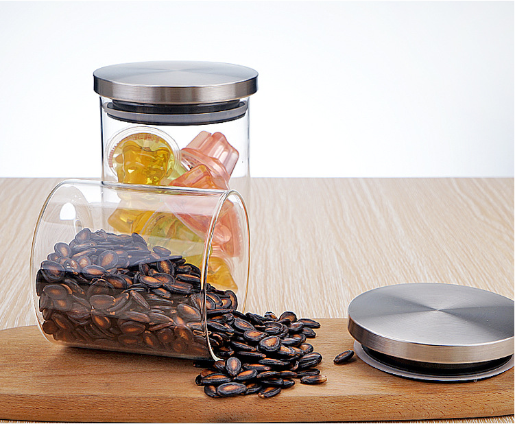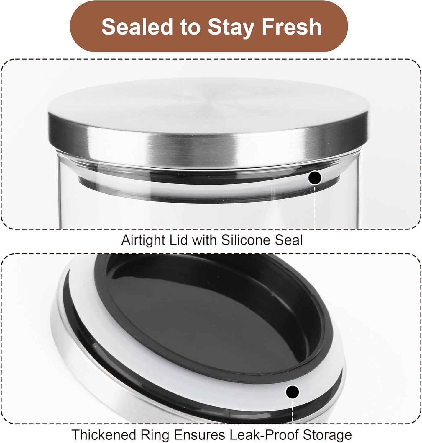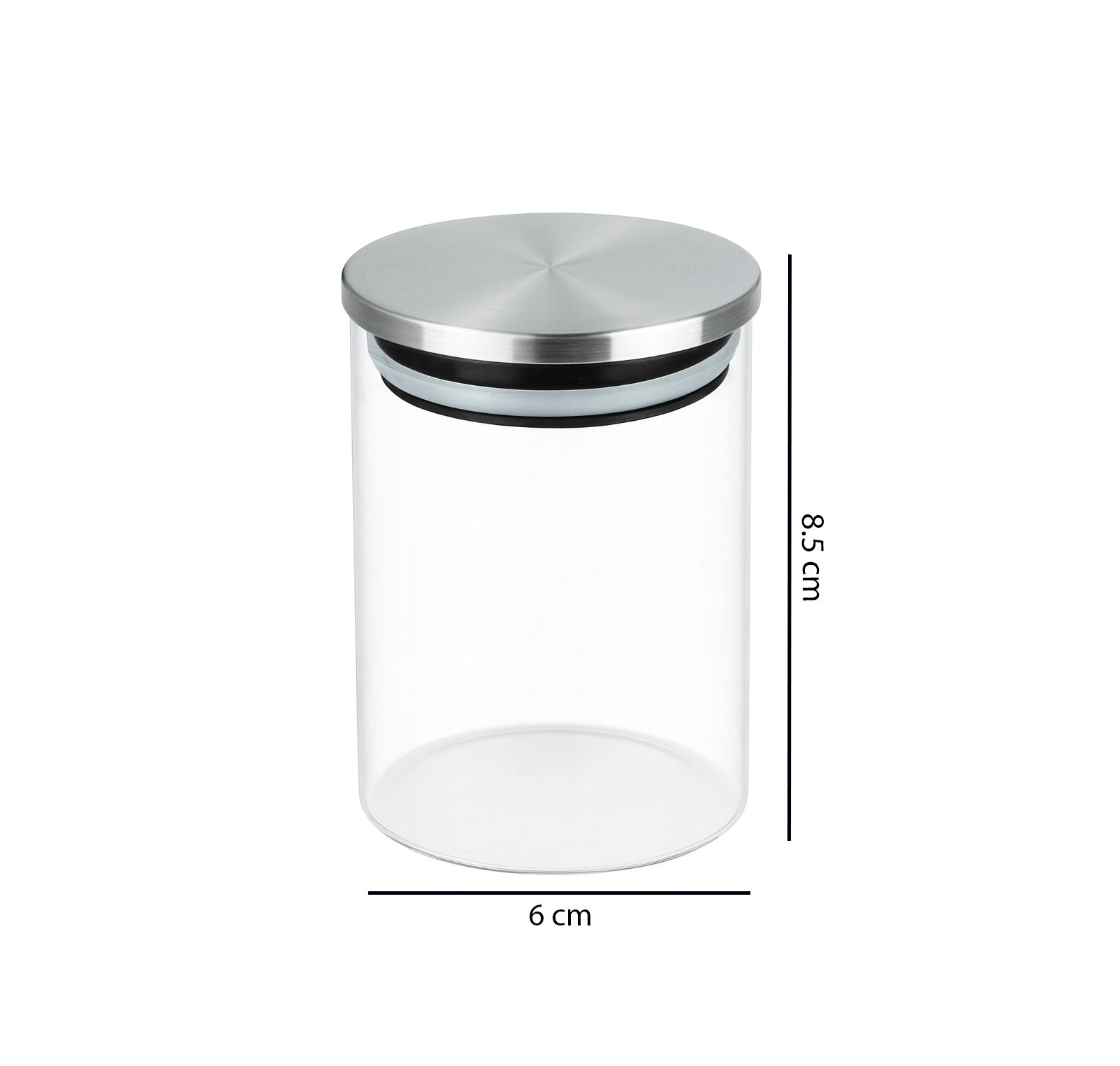 •Material: Jar: Clear thick glass, Lid: Stainless steel, Seal: Silicone airtight ring