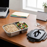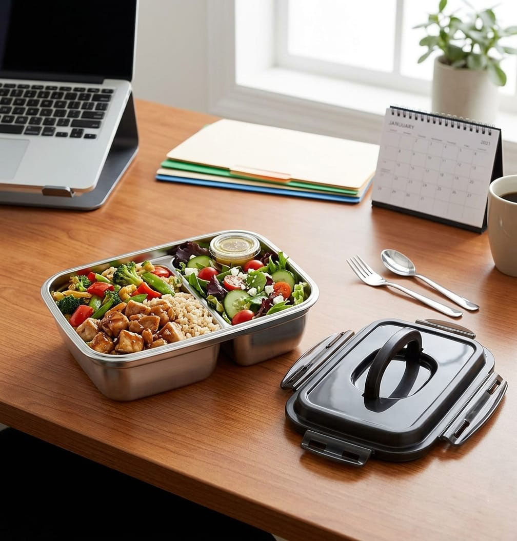 Upgrade your daily meals with smart storage! The Dosthoff Stainless Steel 2 Compartments Lunch Box 1800ml is designed for convenience, durability, and freshness. Crafted from high-quality 18/10 stainless steel, this lunch box is food-safe, rust-free, and built to last. The smart 2-compartment design allows you to separate different meals without mixing flavors, while the silicone sealing and 4-lock system ensure a 100% leakproof experience. Perfect for work, school, or travel, it safely stores hot or cold food and can be placed in the microwave after removing the lid. With its sturdy handle for easy carrying, this versatile container is ideal for meal prep, leftovers, and everyday use. Shop now from Homedash in lebanon and enjoy premium food storage.