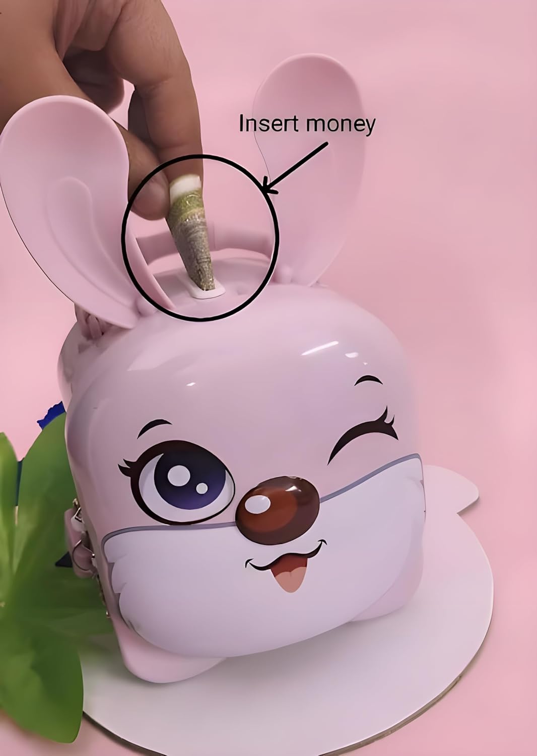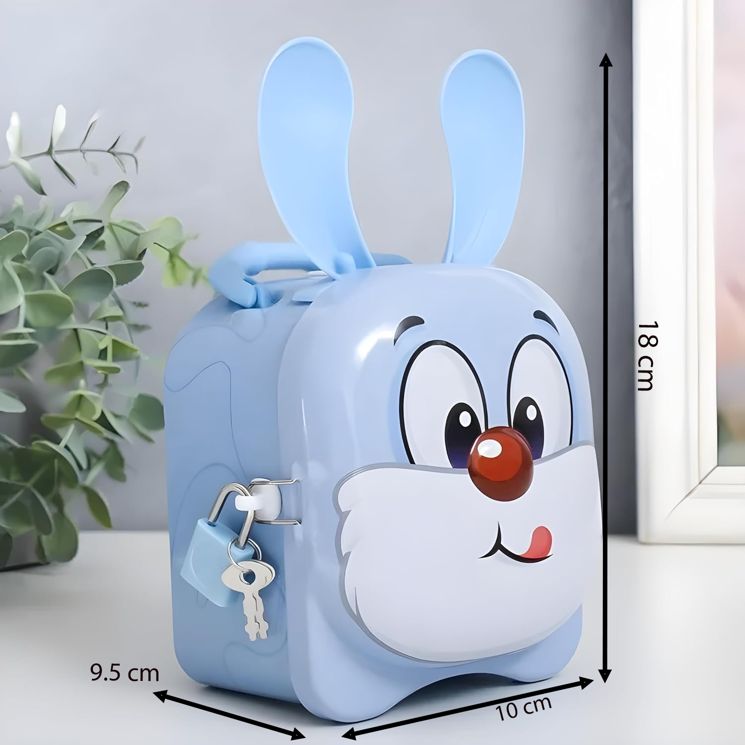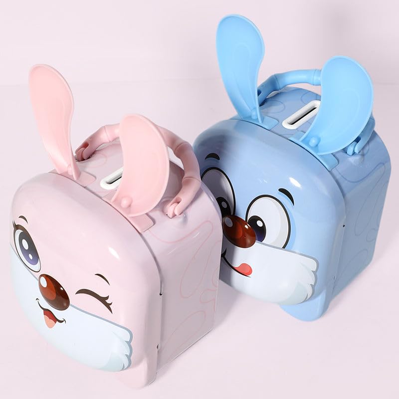 RABBIT SAVING BOX FOR KIDS – PIGGY BOX WITH LOCK & KEYS, PORTABLE COIN BANK WITH HANDLE