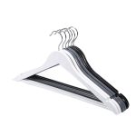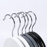 lastic hanger set with rotating chrome hook holding clothes inside closet wardrobe organizer