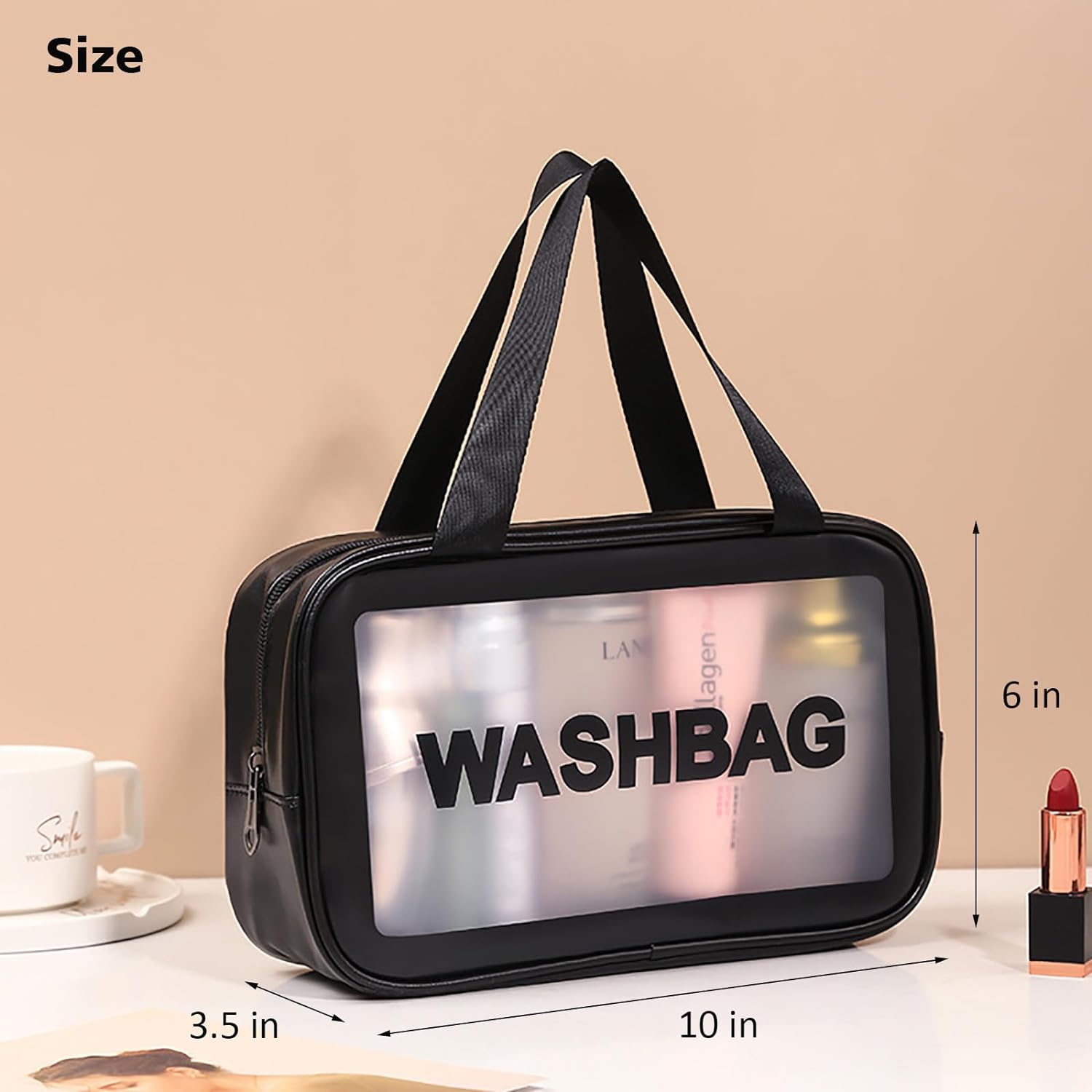LARGE MAKEUP TRANSPARENT WASHBAG – WATERPROOF COSMETIC & TOILETRY TRAVEL BAG