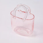 •Elegant pink glass purse design with hand-blown bubble details