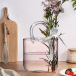 Add charm and elegance to your space with the Handbag Flower Vase in pink. This unique purse-shaped glass vase features a hand-blown bubble design and sturdy handles, making it both artistic and practical. Perfect as a centerpiece for your living room, bedroom, or events like weddings and parties. Its thickened glass construction ensures stability and durability while giving a luxurious touch to any setting. A wonderful gift for loved ones or a chic décor accent for your home.